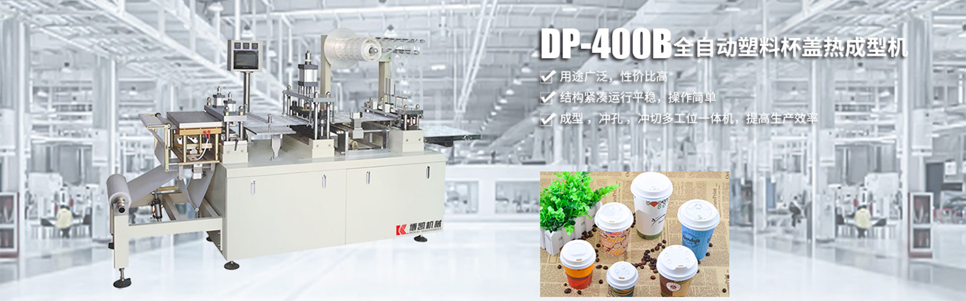 瑞安市博凱機(jī)械有限公司位于祖國的東海之濱,享有中國包裝機(jī)械城之譽(yù)的美麗海濱城市------瑞安。瑞安是中國著名的包裝機(jī)械、制藥機(jī)械生產(chǎn)基地。瑞安市博凱機(jī)械有限公司主營:一次性杯蓋機(jī),杯蓋成型機(jī),塑料杯蓋成型機(jī),全自動塑料成型機(jī);借助于其得天獨(dú)厚的資源優(yōu)勢,結(jié)合市場需求以及多年生產(chǎn)鋁塑包裝機(jī)技術(shù),吸取吸塑機(jī)的優(yōu)點(diǎn)創(chuàng)新研發(fā)的新型產(chǎn)品Dpp400F吹塑成型機(jī)!該機(jī)實(shí)現(xiàn)了放卷,成型,沖孔,沖裁,出料,收卷···